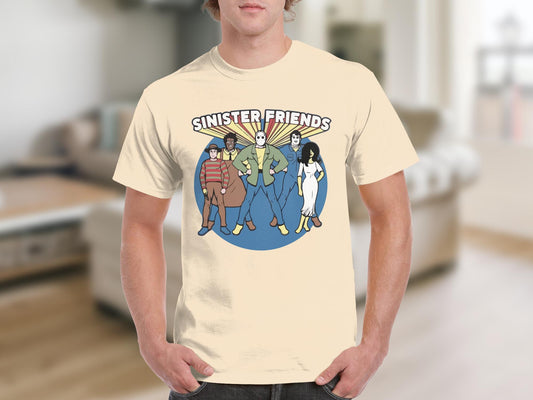 Sinister Friends Graphic Tee Unique Horror Character Shirt Funny Halloween T-Shirt Novelty Costume Gift for Horror Fans