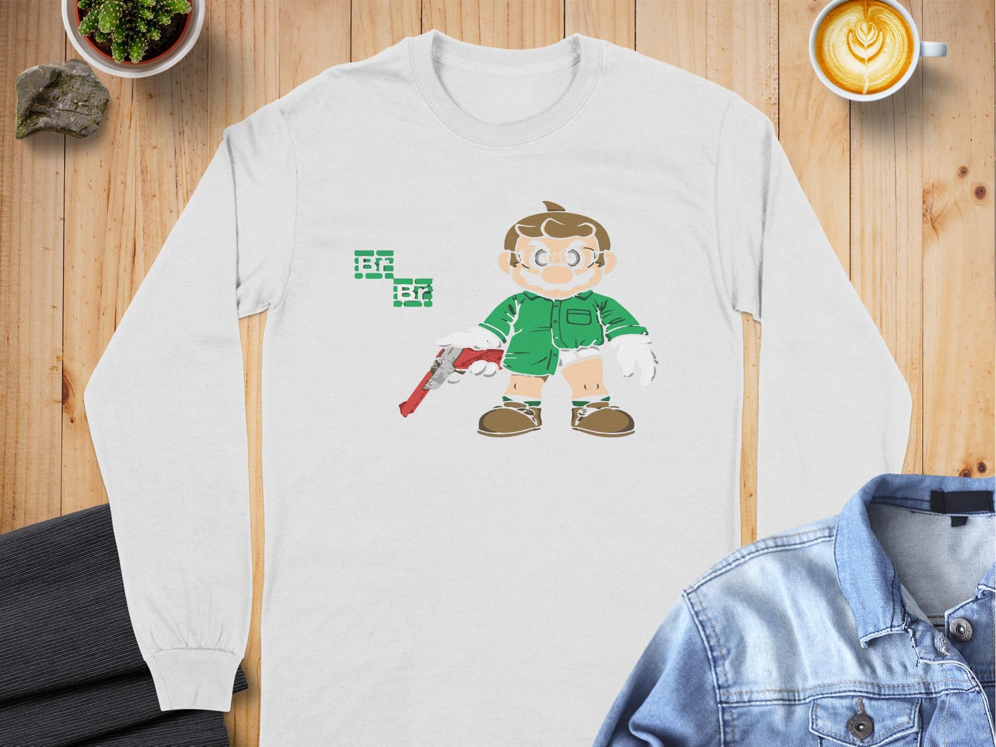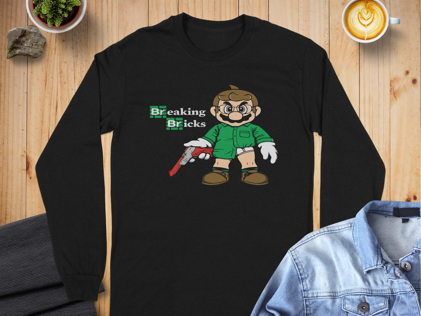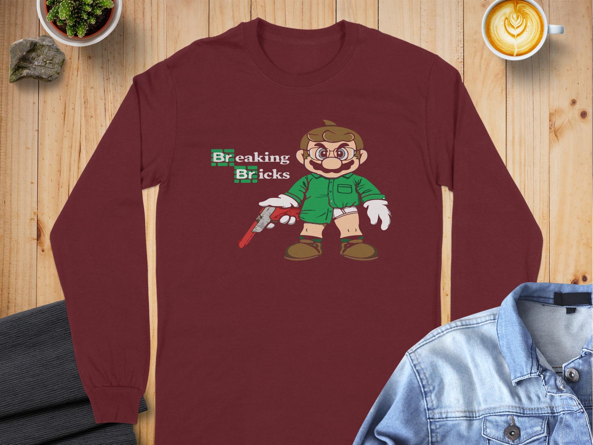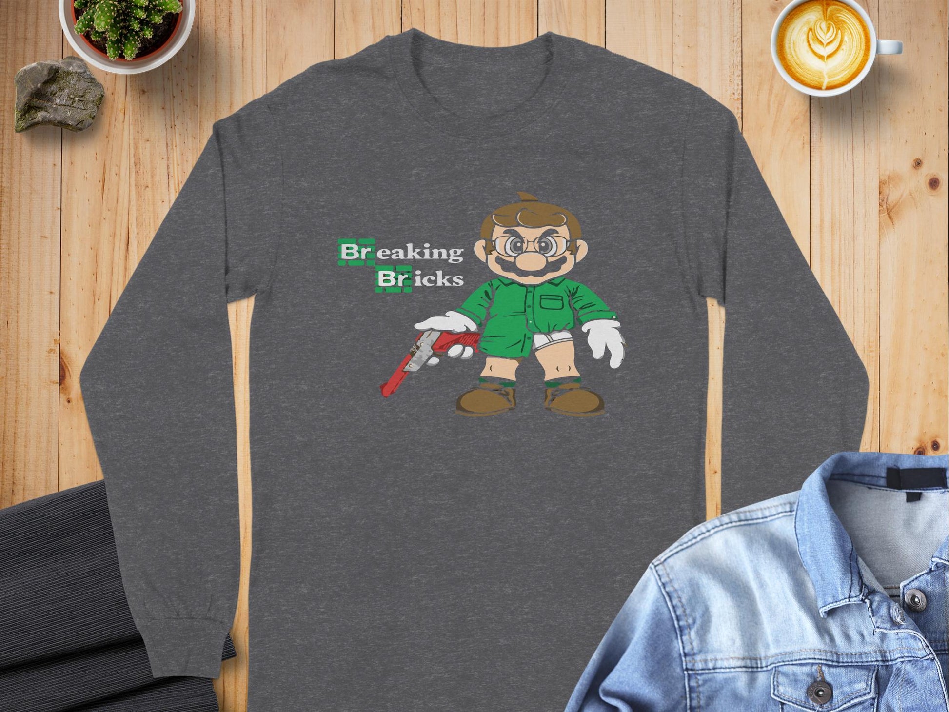 Unique and fun Breaking Bricks character graphic long sleeve t-shirts are perfect for pop culture enthusiasts looking to showcase a playful style