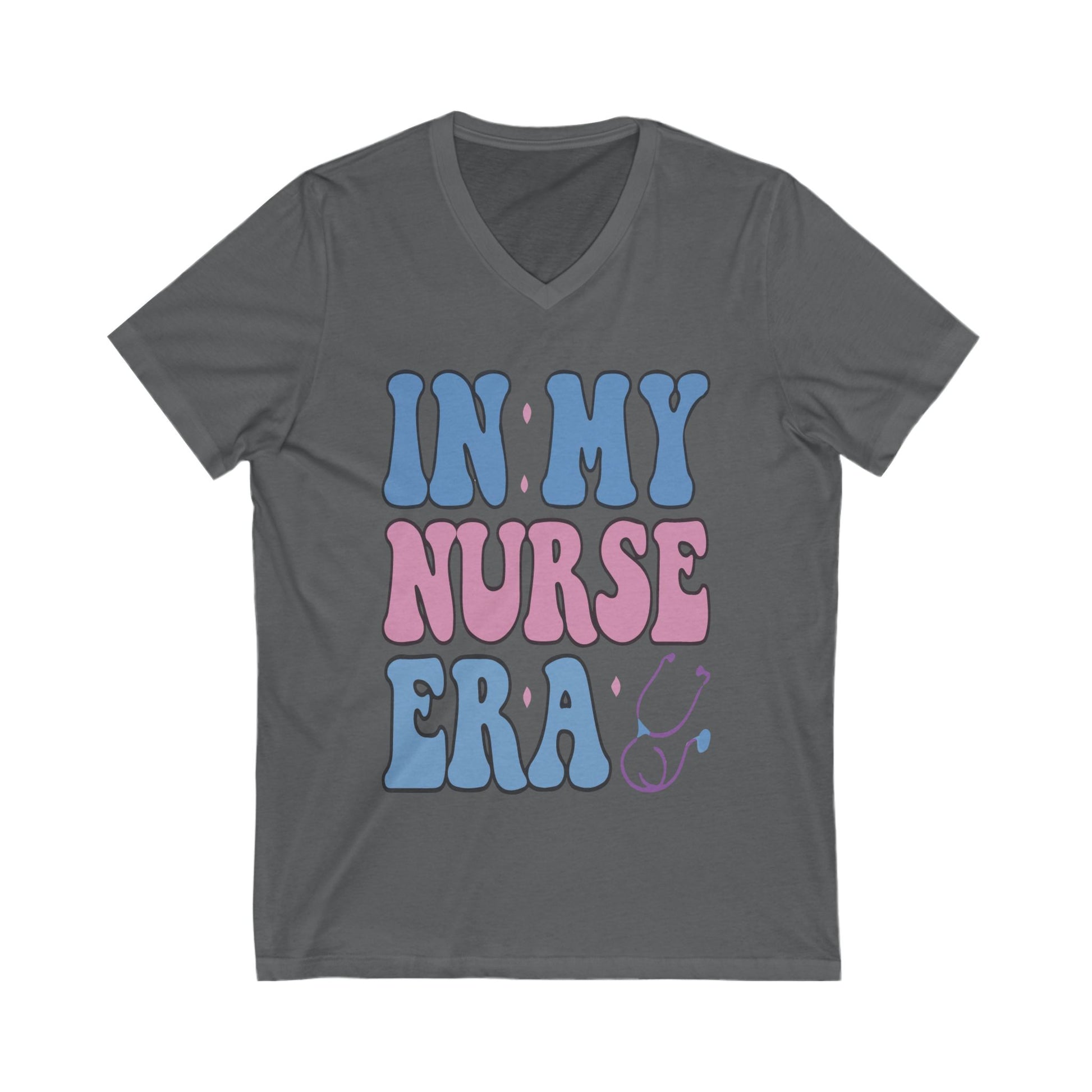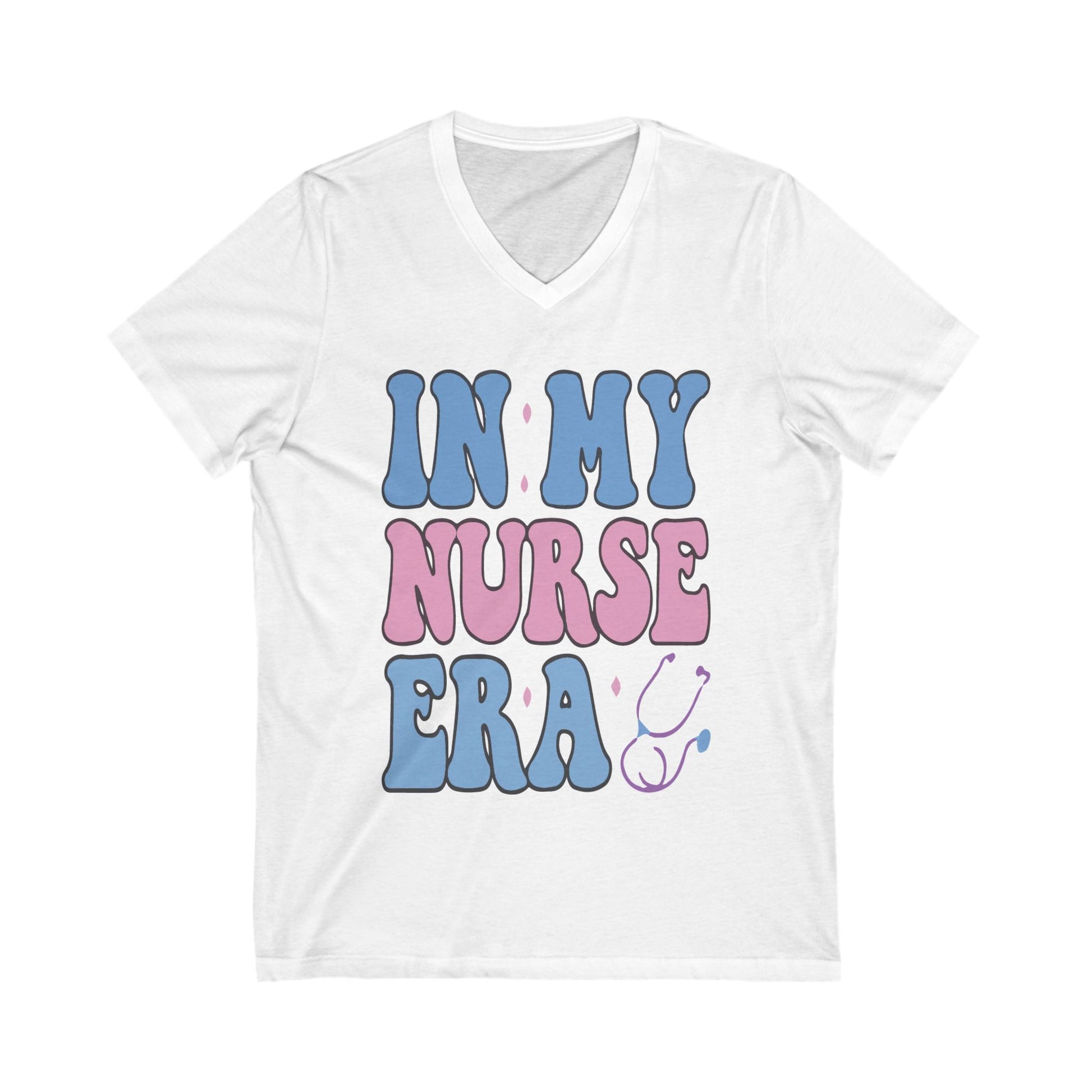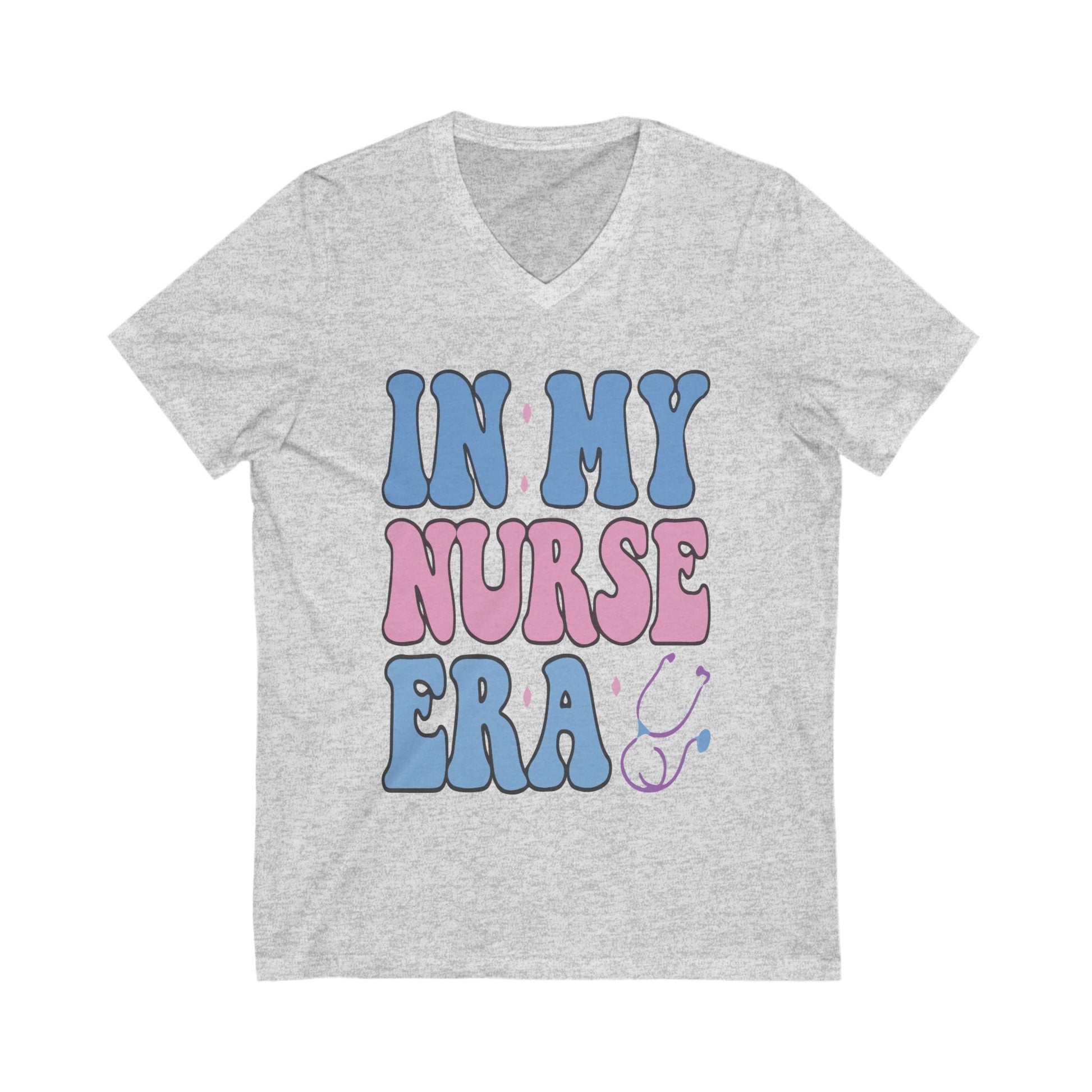 Introducing the perfect addition to your wardrobe: this stylish Unisex Jersey Short Sleeve V-Neck Tee. Designed for comfort and versatility, it features a fun and vibrant design that instantly uplifts your mood. Whether you're heading to work, running errands, or enjoying a casual day out, this tee integrates seamlessly into your lifestyle. It’s particularly relevant for healthcare professionals, nursing students, or anyone who wants to celebrate their passion for nursing. Perfect for occasions like Nurse Appreciation Week, graduations, or everyday use, this shirt is sure to become a favorite.